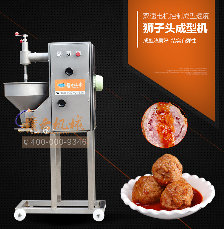 獅子頭成型機是我司研發(fā)的有一款適合大肉丸成型的設備,如寧都大肉丸,獅子頭,該機采用雙速電機分別控制進料速度和切割速度,調(diào)節(jié)更人性化處理,適合不同稀稠度肉漿的成型,是寧都大肉丸、獅子頭成型的好幫手。