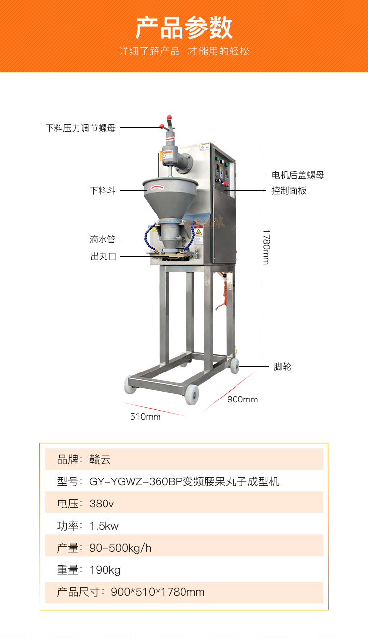 主頁-> 肉丸成型機械->實心肉丸機->變頻腰果丸子機