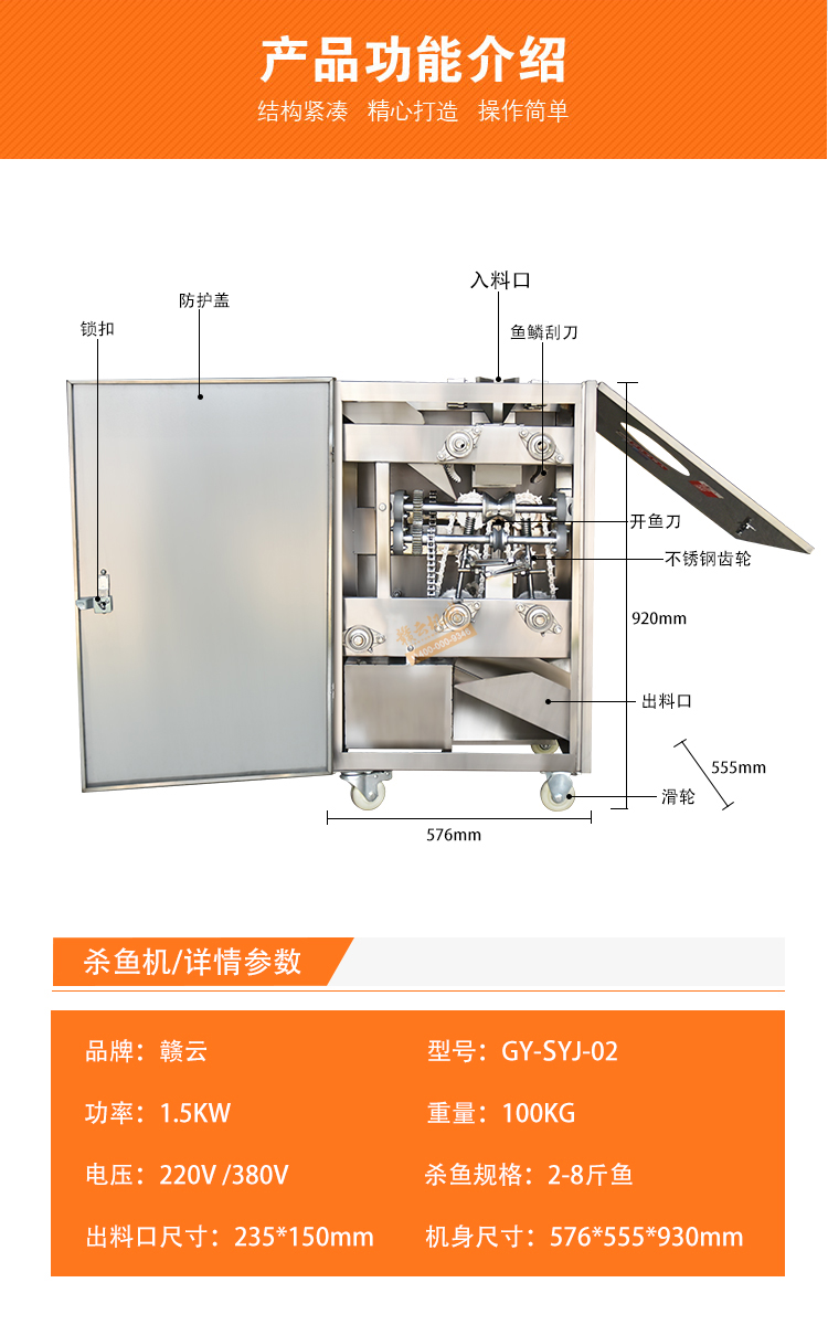 水產(chǎn)加工設(shè)備->魚(yú)肉加工設(shè)備->贛云牌去鱗開(kāi)背開(kāi)肚殺魚(yú)機(jī) | |||||||
