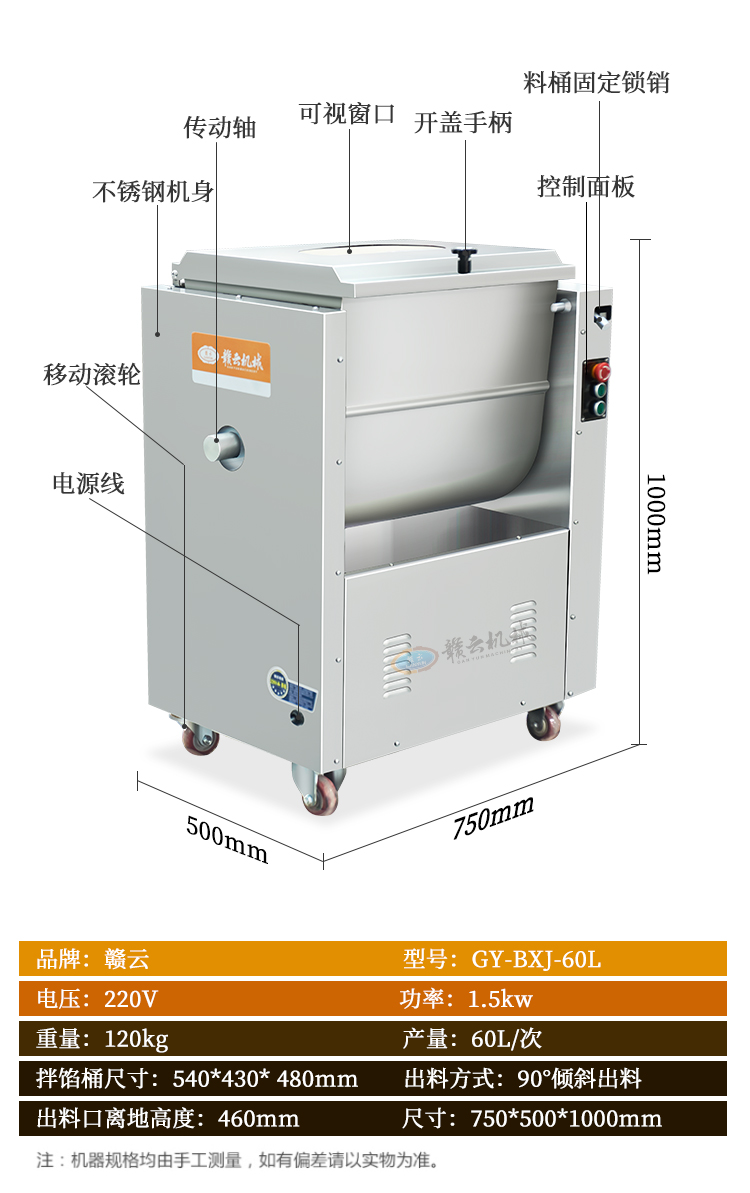 肉制品前處理->斬拌滾揉設(shè)備->60L拌餡機(jī) | |||||||